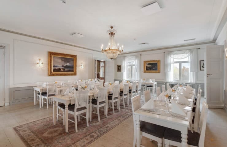 - Koko kartano: Istuen 140 henkilöä, cocktail-tilaisuudessa jopa 200 henkilöä.